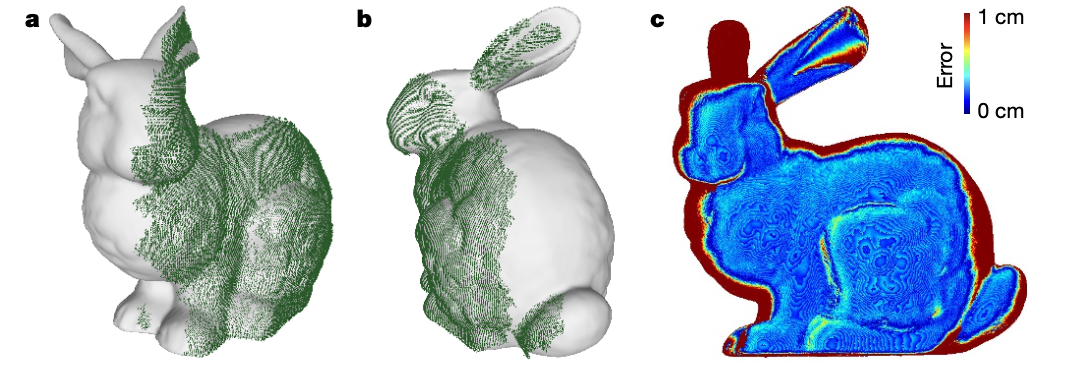但是LCT模型和当时所有的NLOS方法一样,无法处理隐藏场景内部的自遮挡问题。如图4所示,兔子左耳对右耳的遮挡导致了右耳部分重建失败。