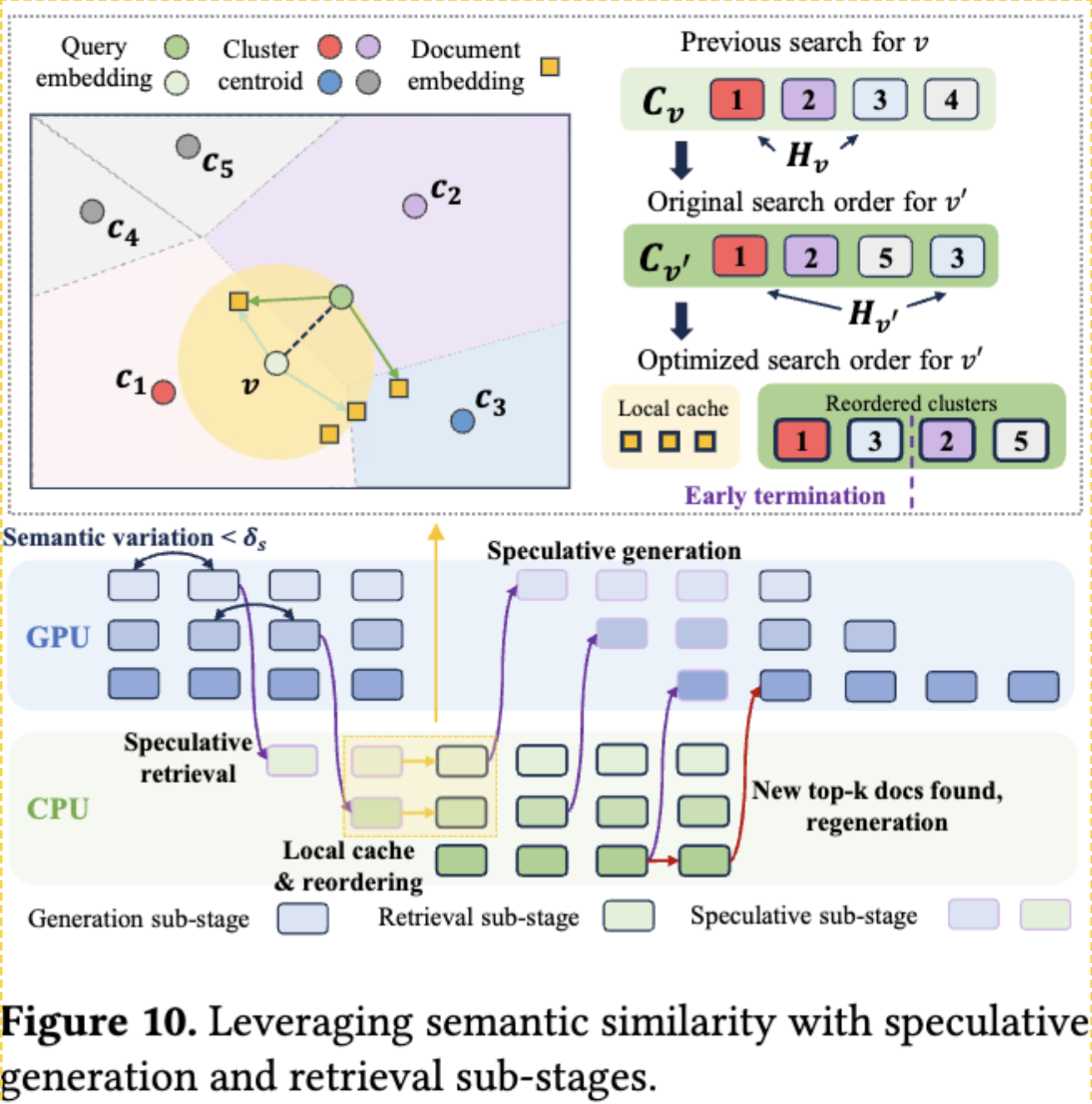 - 投机生成: 当检索阶段之后跟着生成阶段时,可以使用小集群子集的部分搜索结果来启动推测性生成。如果失败则重新生成。