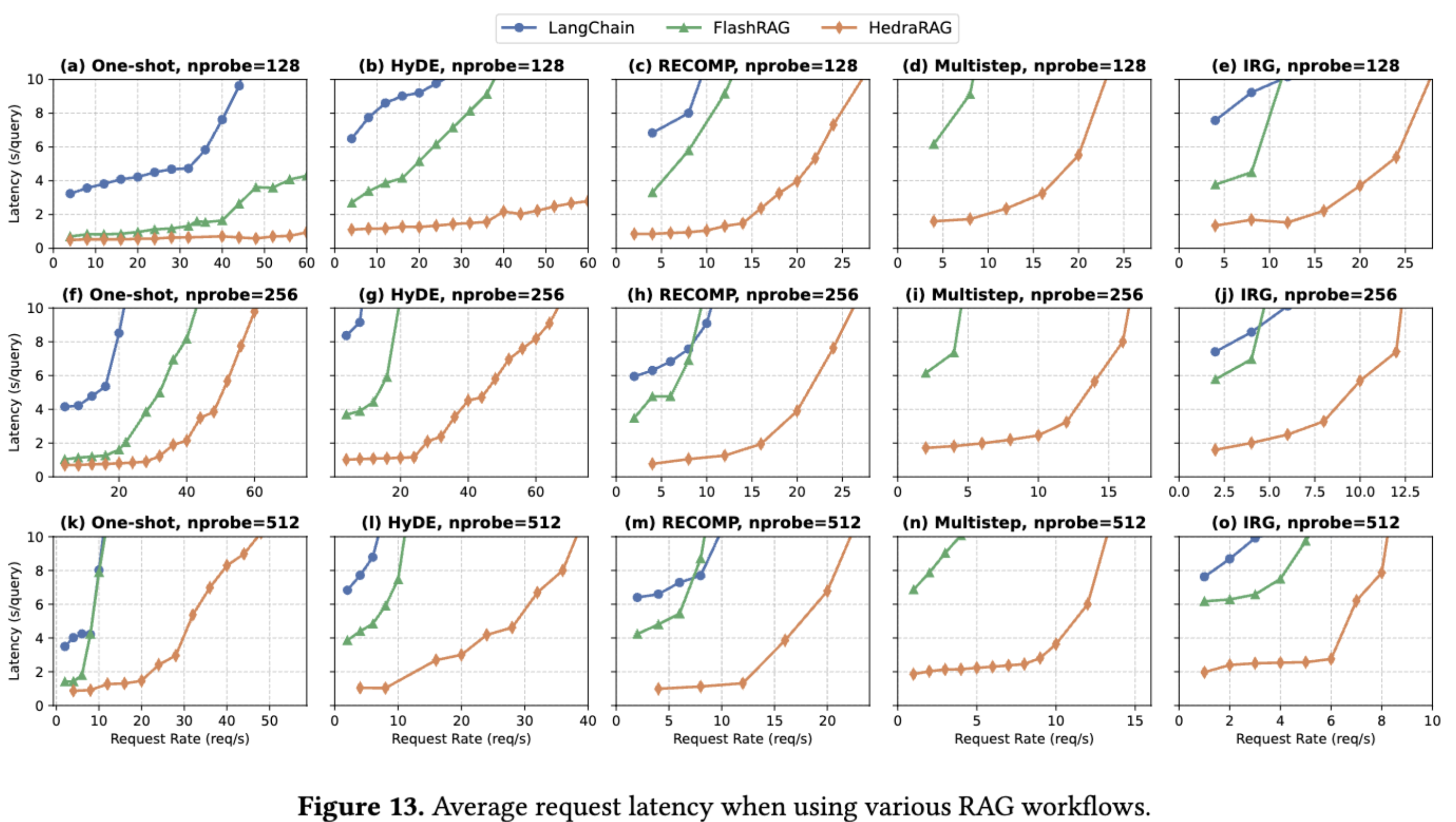 早期两阶段工作流的相关研究: LangChain、FlashRAG 和基于 vLLM 的管道通过混合 CPU–GPU 设计将大语言模型(LLM)推理与 FAISS 等基于向量的检索组件集成在一起,以实现基本的检索增强生成(RAG)功能。