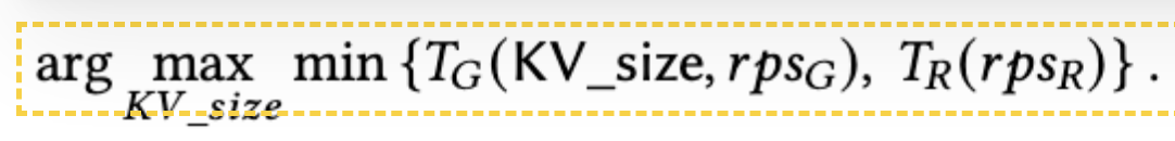 LLM 权重与 KV 缓存的共存在 GPU 内部是一个权衡问题,所以作者定义了下面这样的一个函数以动态计算缓存大小: