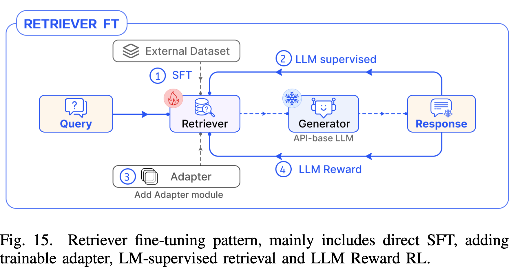 - Generator Fine-tuning: 使用领域数据对 LLM 进行指令微调(Instruct-Tuning)。