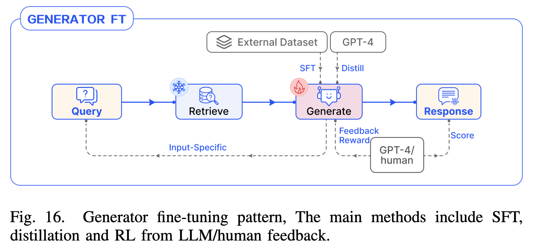 - Generator FT:通过指令微调让 LLM 适应特定的输入输出格式(如 JSON)或风格。