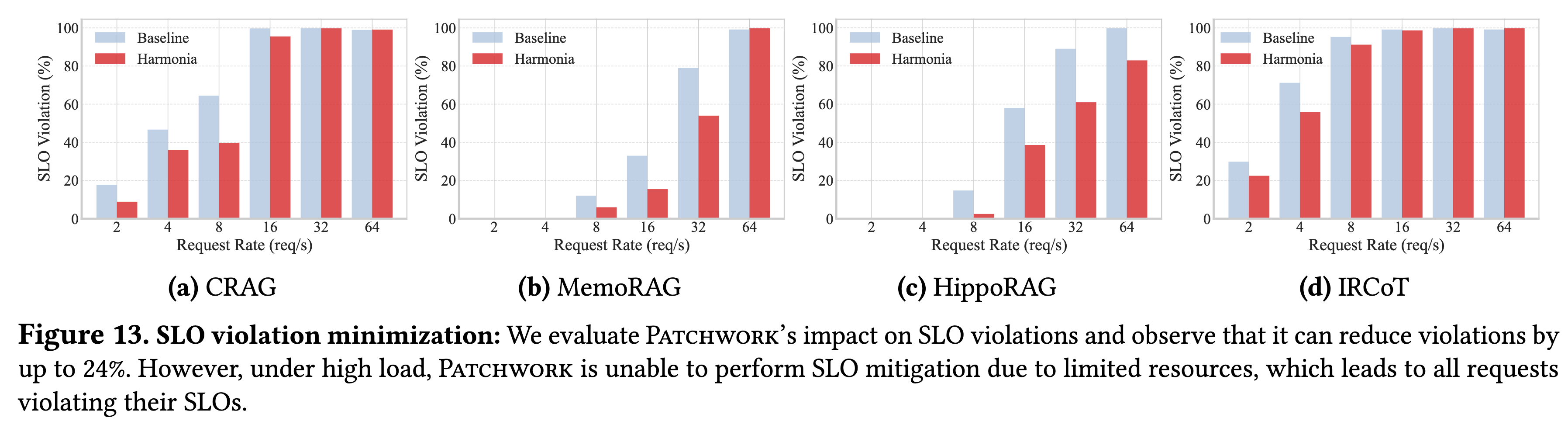 效果:在中等负载下,开启运行时 SLO 缓解机制可将违约率降低约 24%。